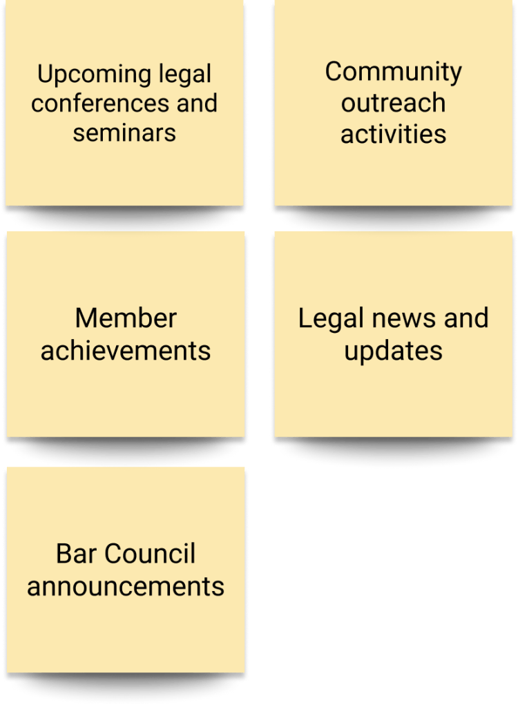 Box cutouts of various categories, important to stakeholders and barristers, were created in different sizes. To create a hassle-free, one-stop shop for all membership news.