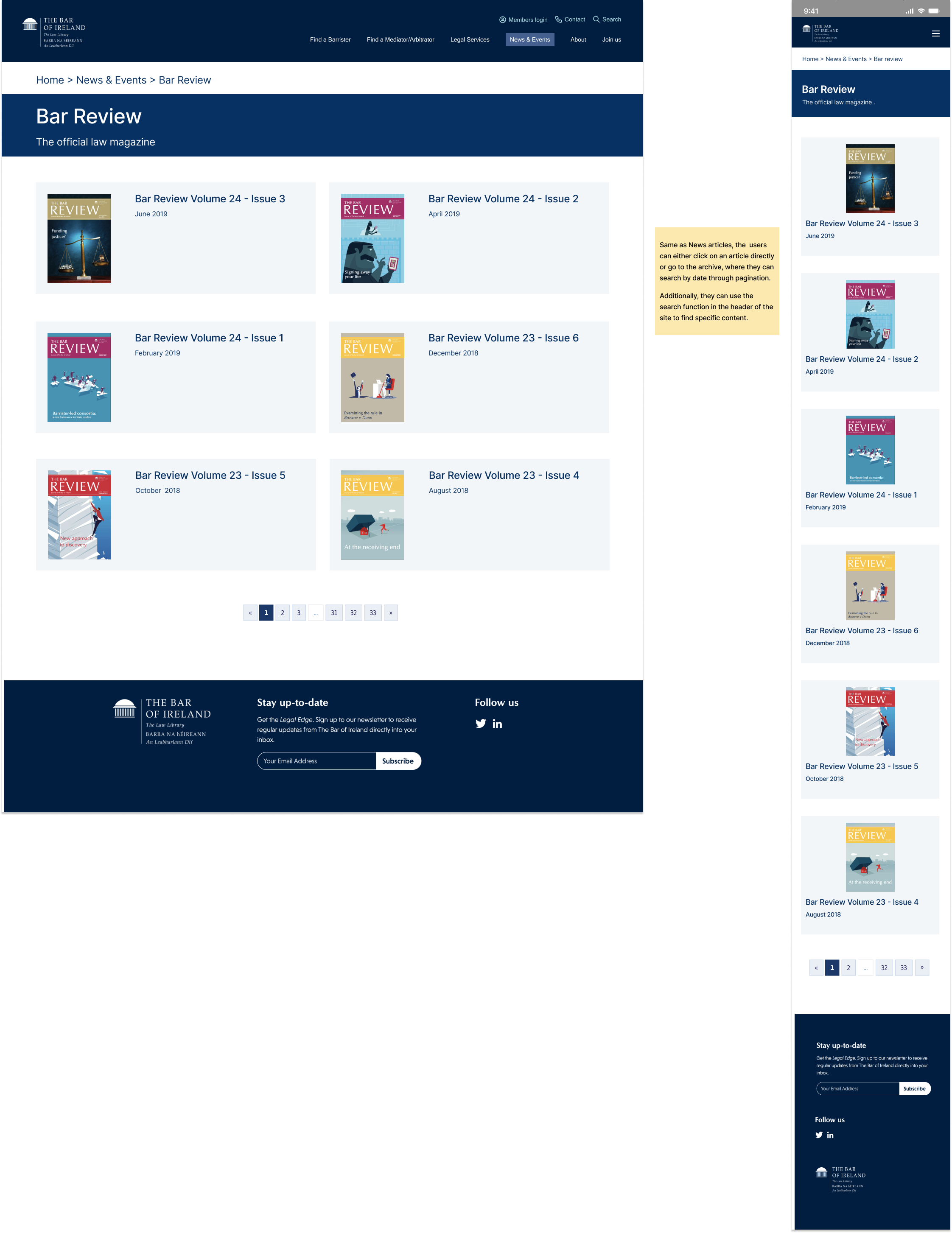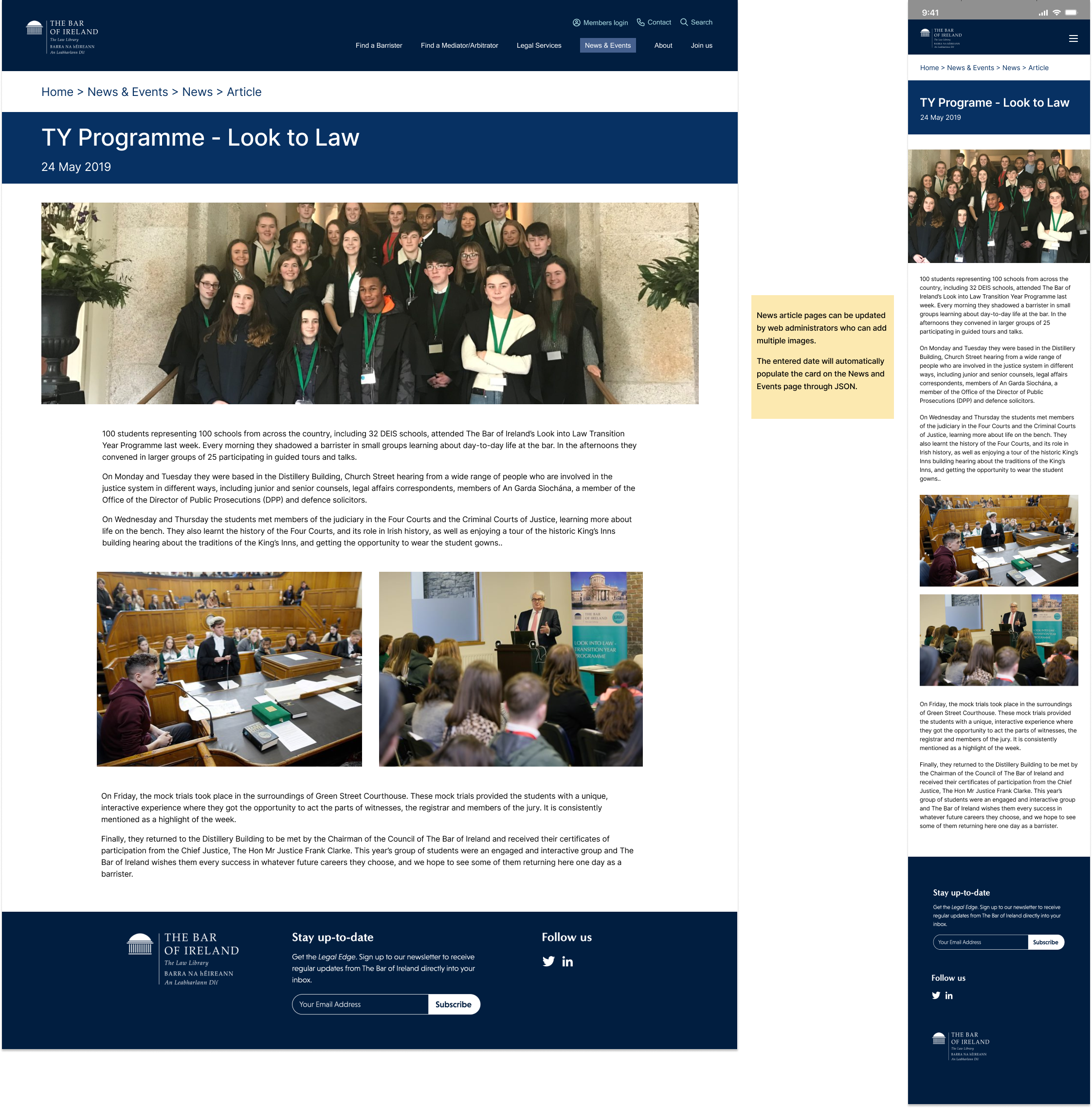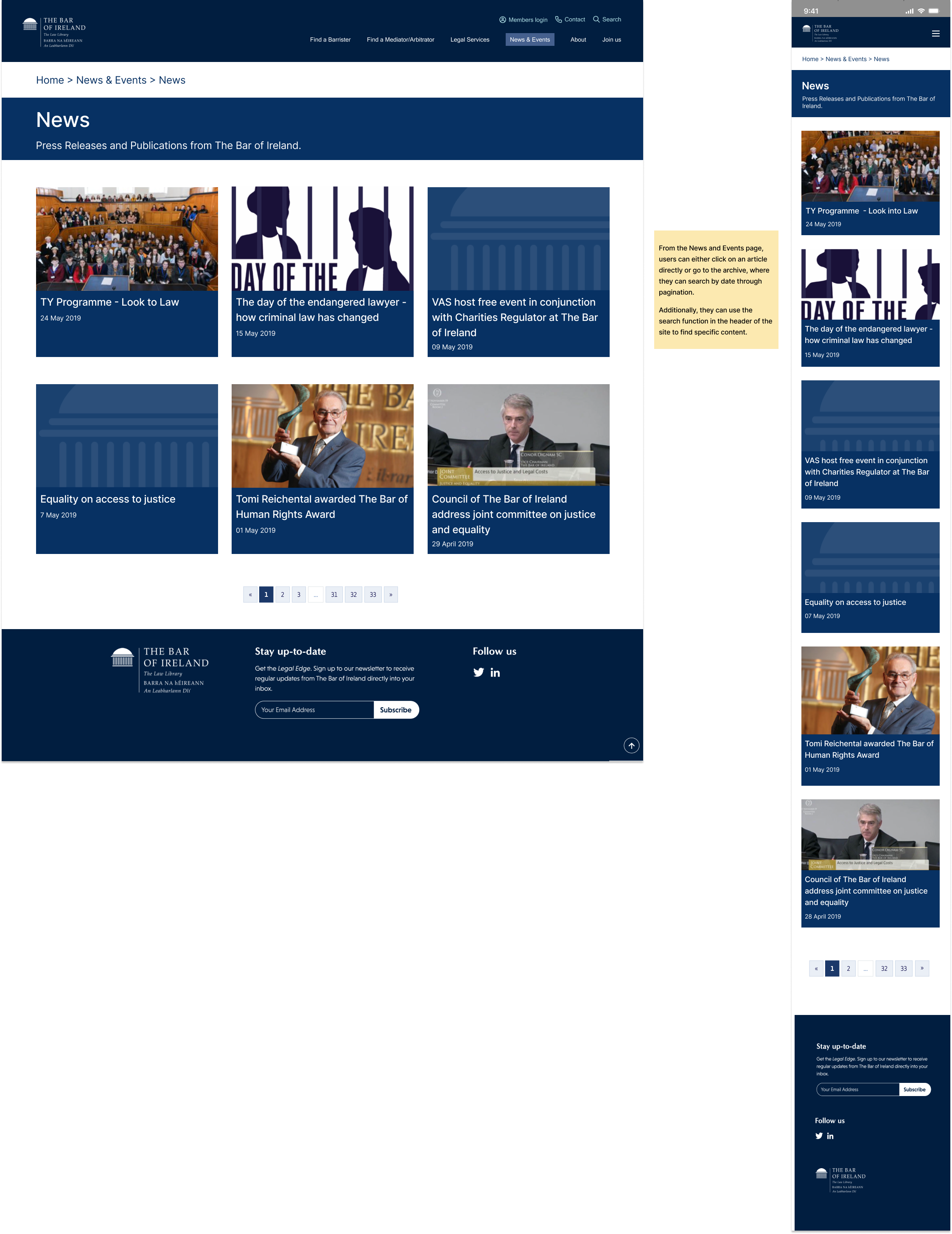 A dedicated news and events page on The Bar of Ireland website would be extremely valuable to its members.