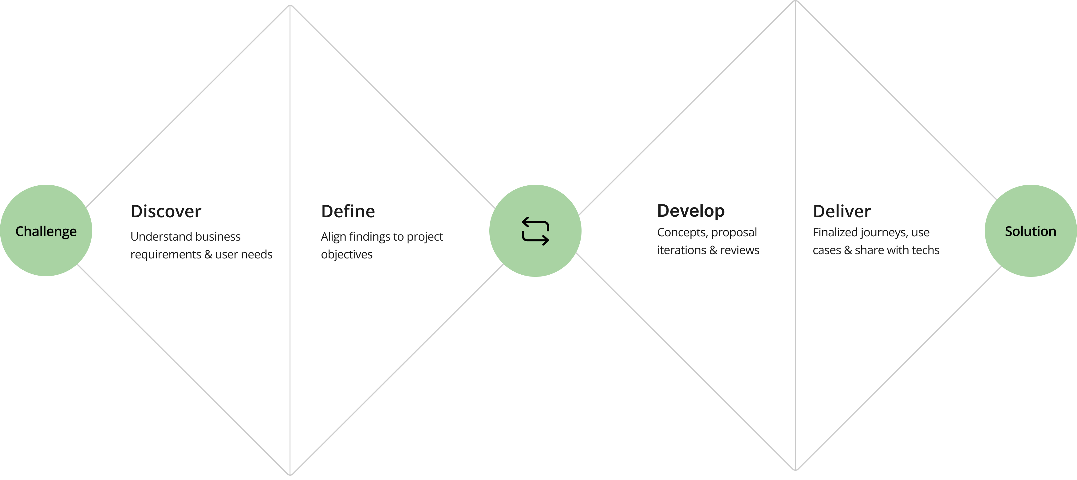I applied the Double Diamond approach for EmotionsBite to tackle the complex nature of emotional eating. This process helped me explore widely through research, define the core challenges, and then iterate and refine solutions. It ensured that the app’s features, like logging, planning, awareness tracking, and mindfulness support were grounded in user needs and evidence-based insights.