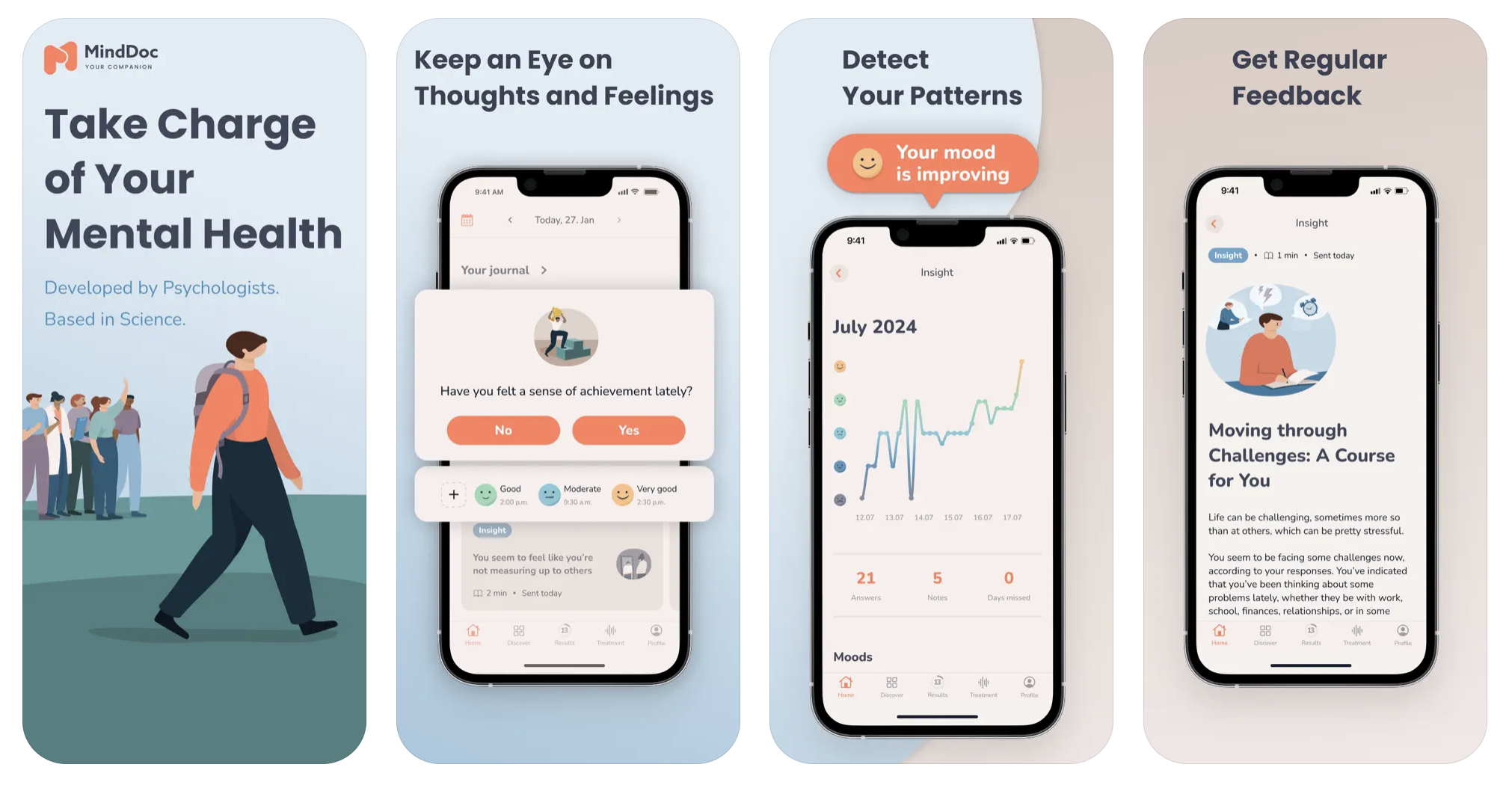 - Features: Daily mood reflections, mental health assessments, exercises for anxiety/depression.