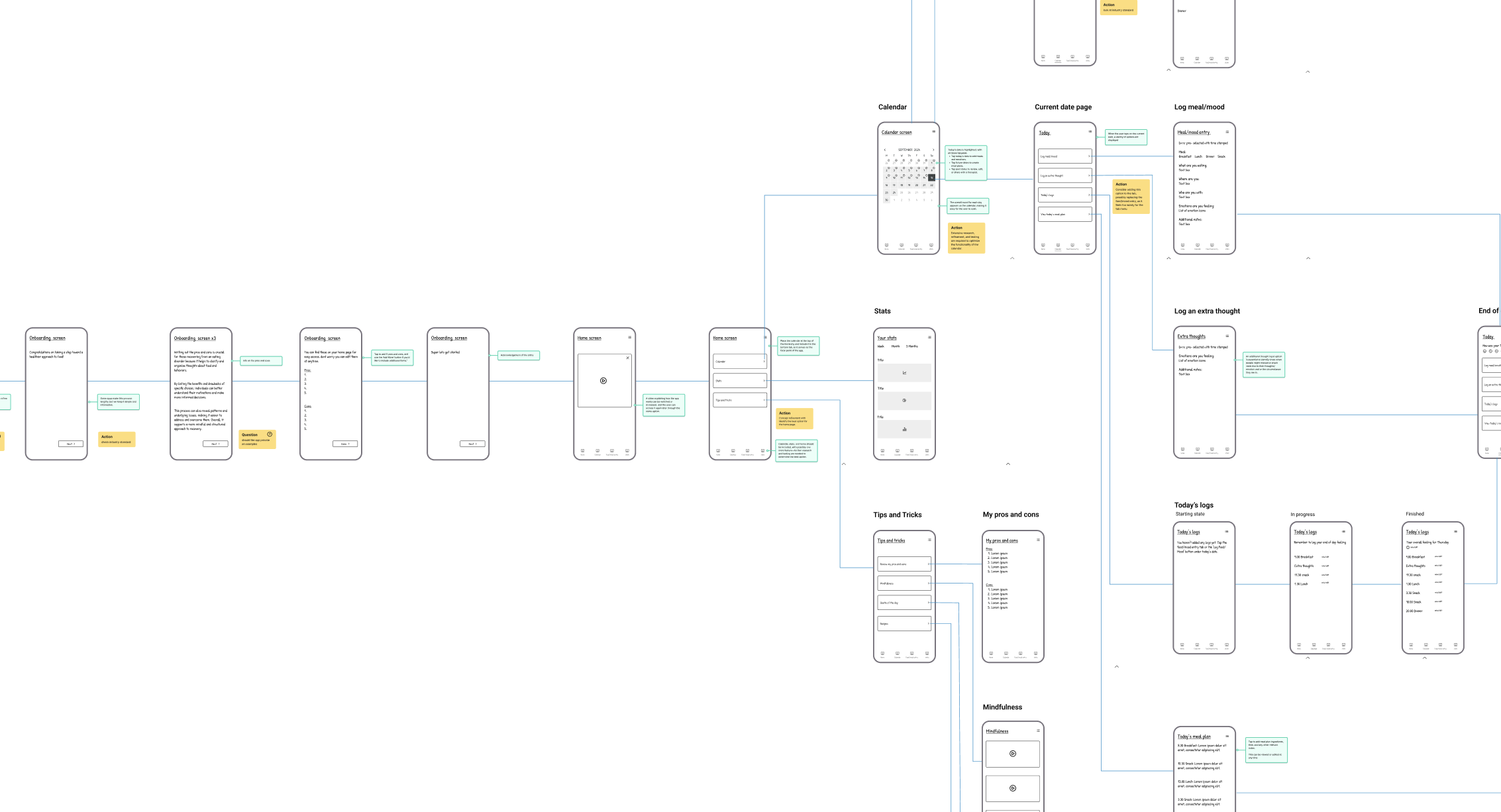 In the early exploration phase, I focused on understanding the lived experiences of people struggling with emotional eating. Through a mix of informal interviews, desk research, and analyzing existing forums and articles, I uncovered recurring themes of frustration, guilt, and the lack of supportive tools.