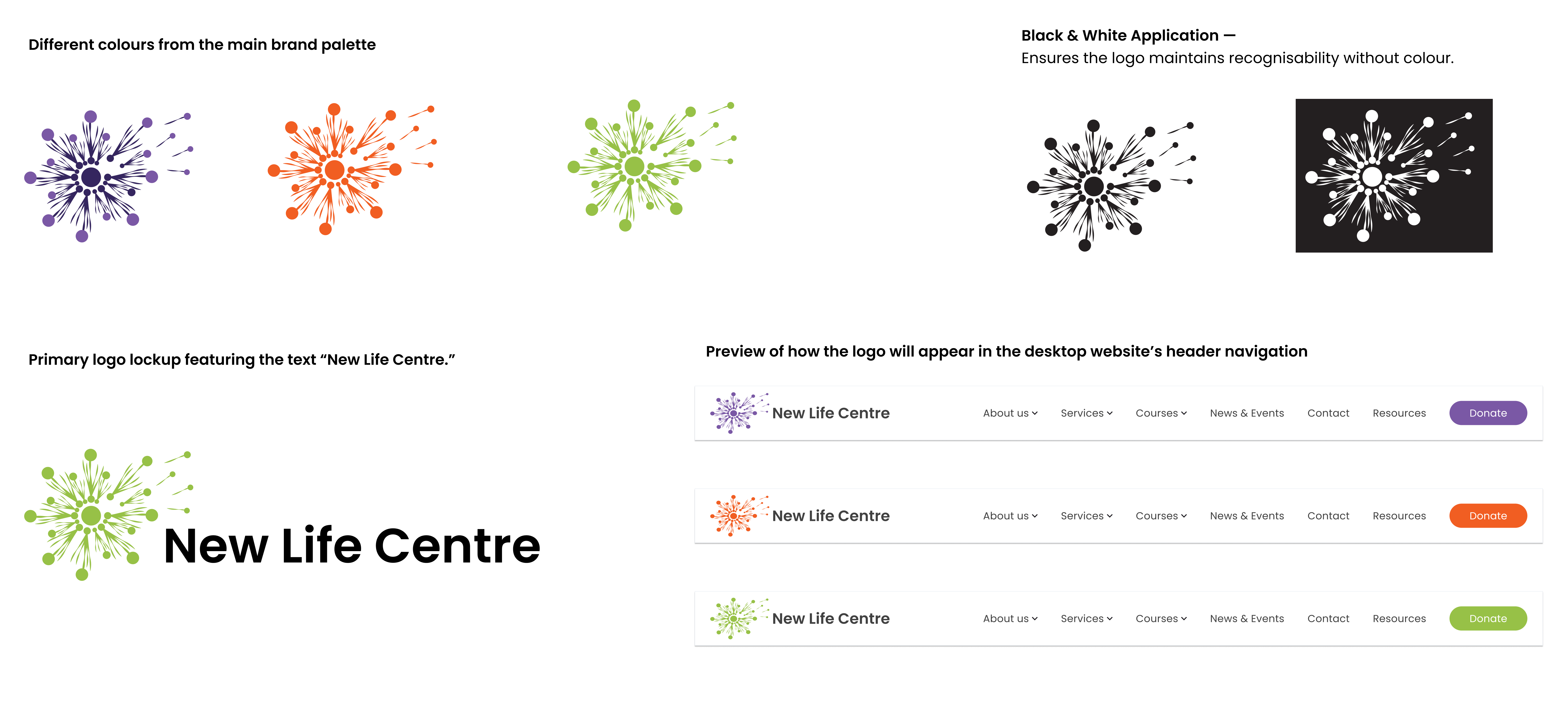 Through meetings with the New Life Centre staff, I identified key needs and priorities for the website. These findings helped define the project goals and design direction. In addition to improving usability and content structure, there’s also a strong interest in updating the Centre’s branding, including refreshed colours and high-resolution logo files to help future-proof the organisation as it grows and evolves.