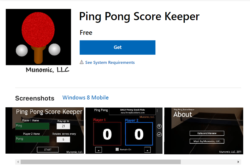 - Tracks your ping pong score