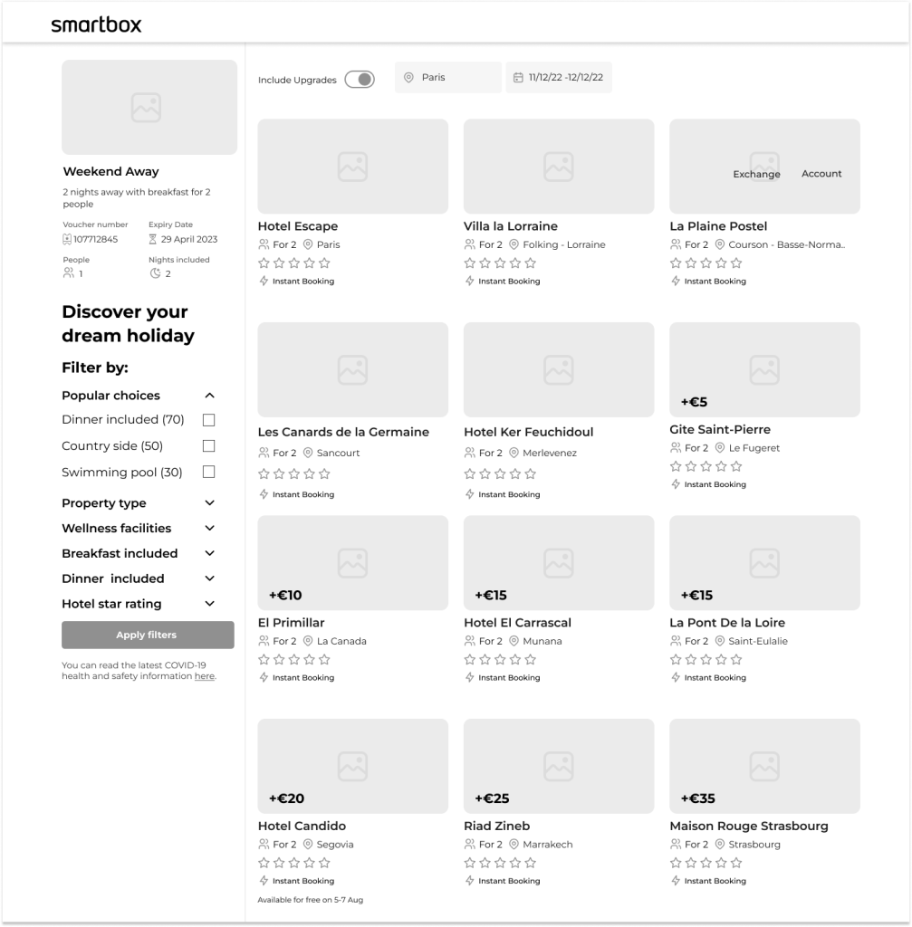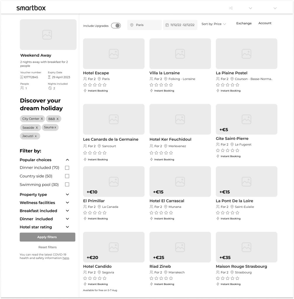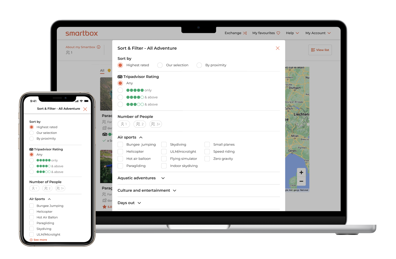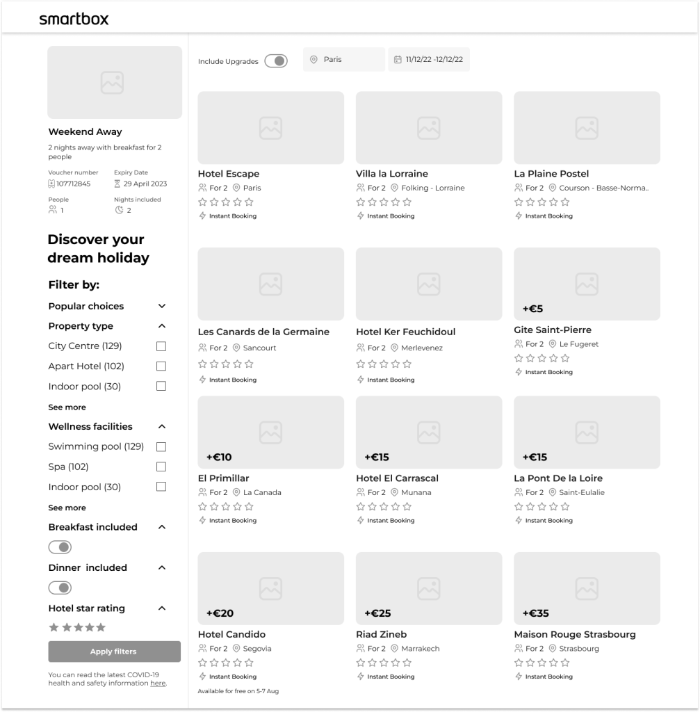 In the second phase of this project, we aimed to improve the user experience within Smartbox by introducing advanced filtering options for experiences and enabling users to browse the entire Smartbox portfolio.