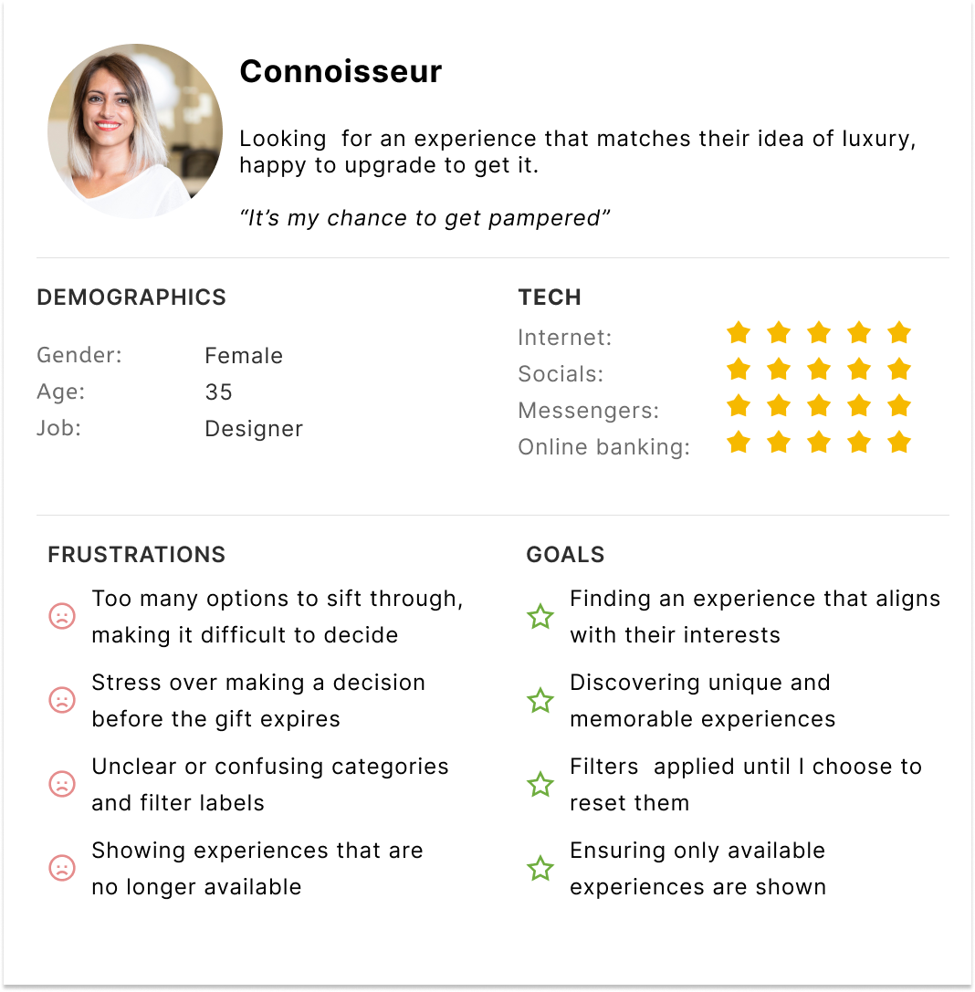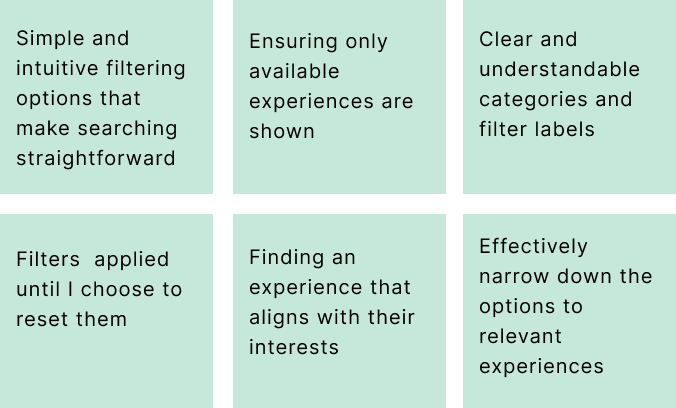 The final product introduces users to a new filtering method, allowing them to discover experiences beyond what they’ve been gifted. They now have the freedom to browse and upgrade to experiences that truly align with their desires.