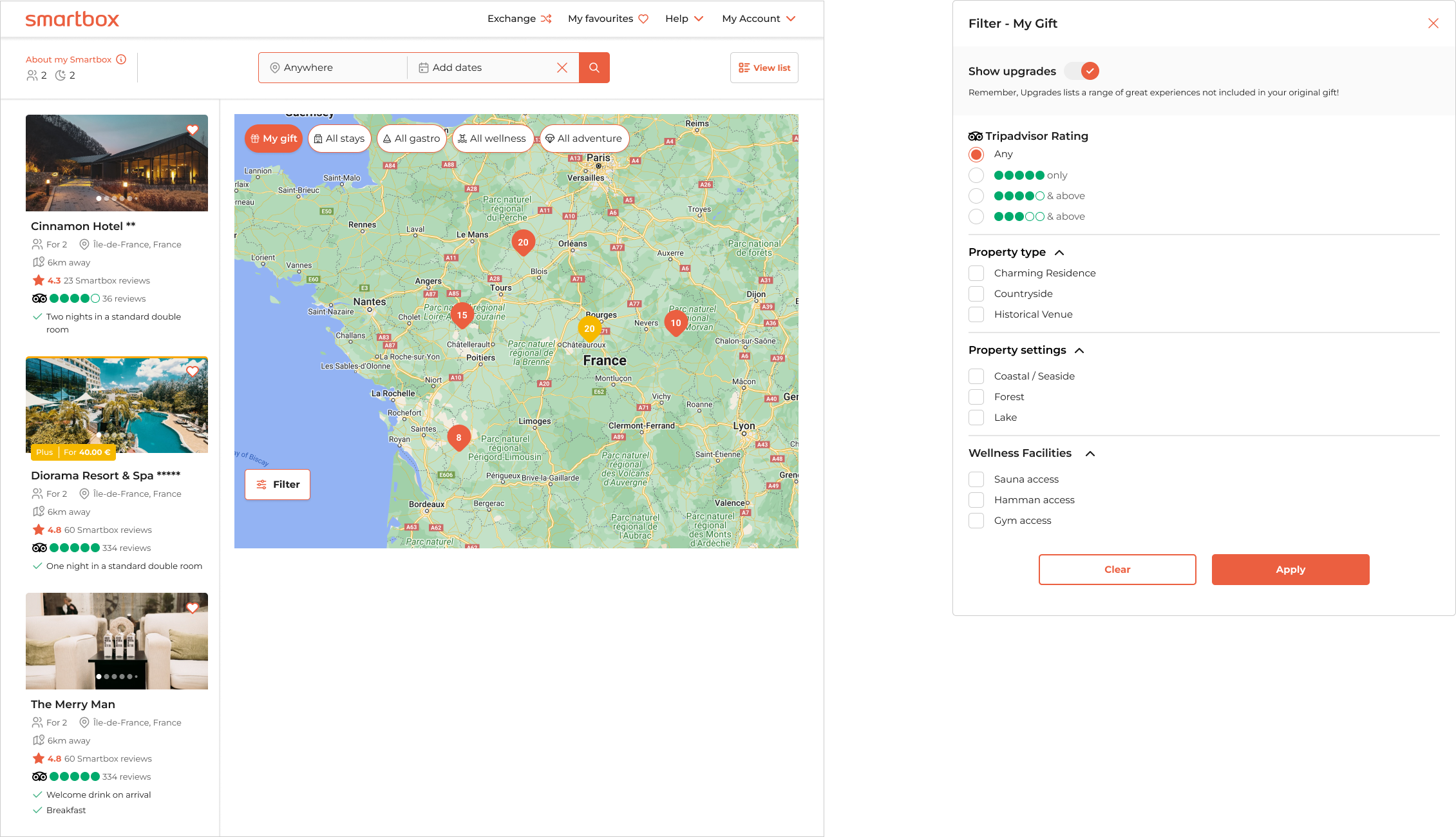 Smartbox intends to improve the booking process by enabling users to see and interact with specific filters associated with their gifted box. This will help them find the best experience tailored to their particular needs and desires.