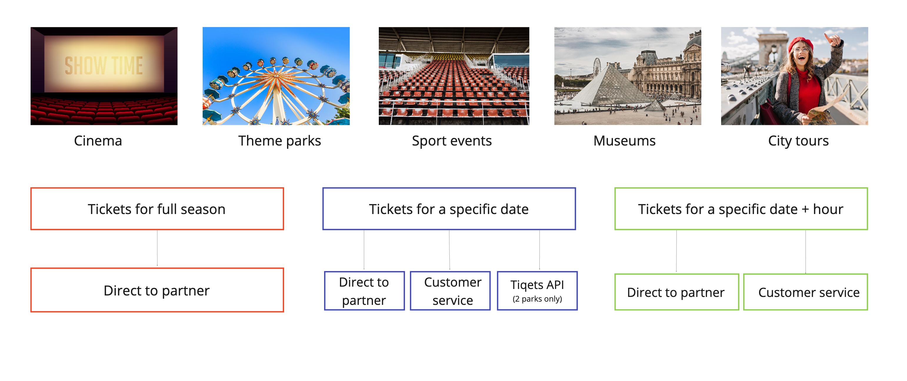 A decision was taken to integrate with “Tiqets”, an online ticketing platform aggregating; cultural tours, museums, theme parks, water parks, stadium tours etc.