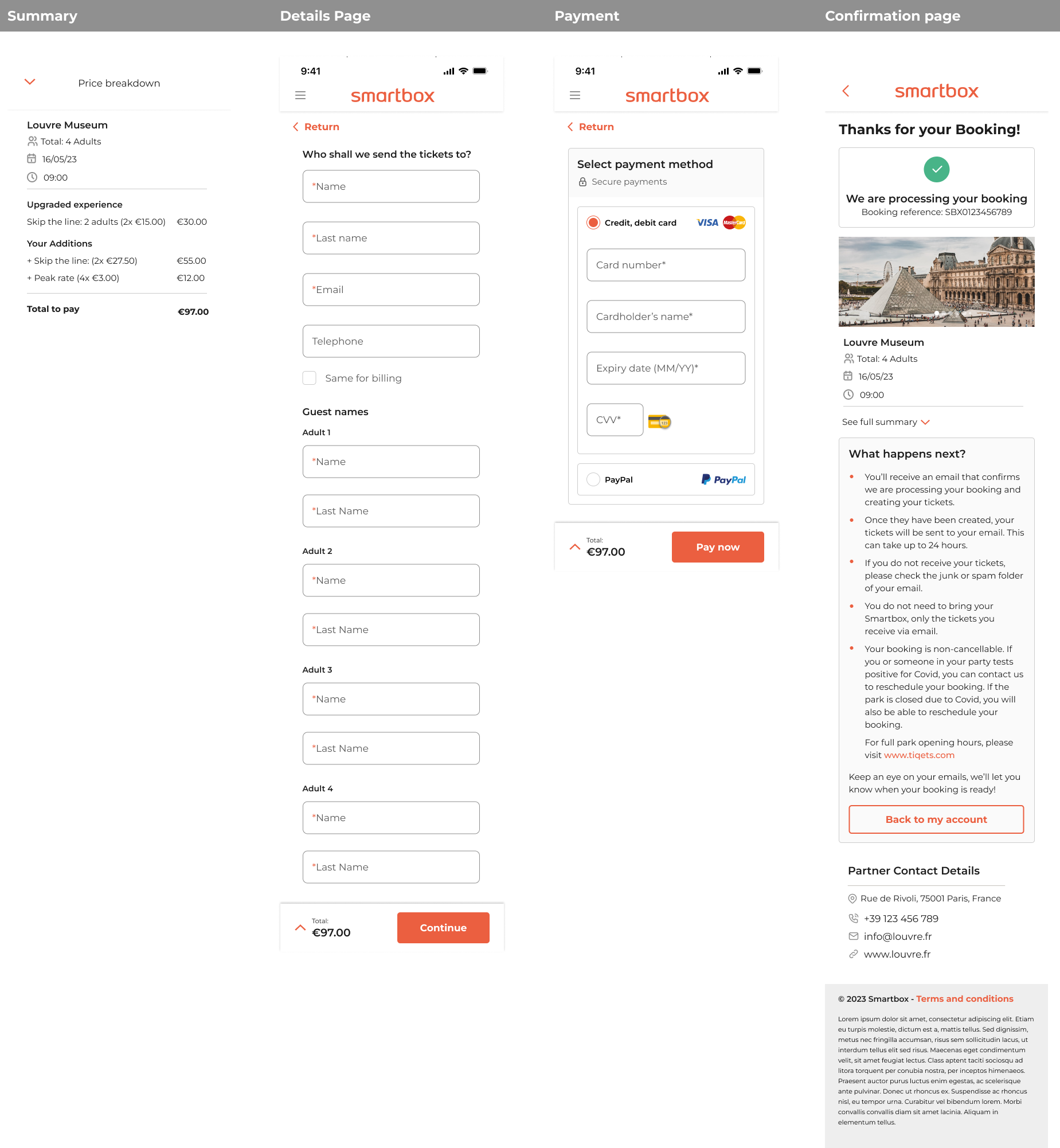 This journey must also take into account extra charges may occur along the way, a running price breakdown will need to be introduced and be easily accessible at any point in the journey, so there are no surprises for the user at checkout.