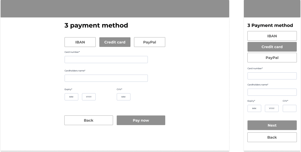 The objective of the wireframe testing was to evaluate the effectiveness of the step-by-step/wizard form approach, which breaks down complex processes into manageable stages. This testing aimed to ensure that the design guided users smoothly through each interaction stage and to identify any market-specific adjustments needed before transitioning to high-fidelity designs
