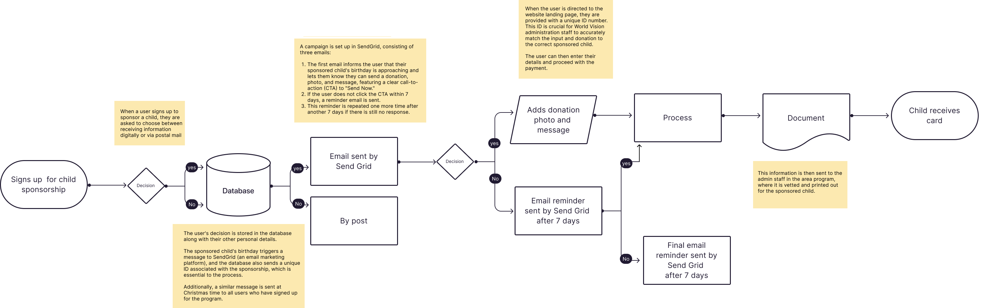 Objective: The objective of the hi-fi testing was to evaluate the functionality and user experience of the new digital donation process. This involved testing the flow from receiving an email with a personalized link to making a donation, uploading a message, and writing to a sponsored child. The goal was to ensure the process was intuitive and effective, ultimately saving time and reducing costs compared to manual posting.